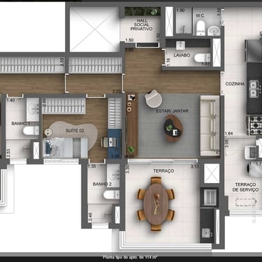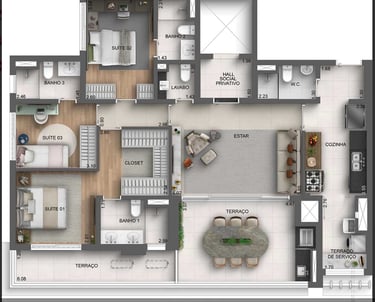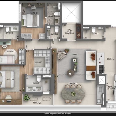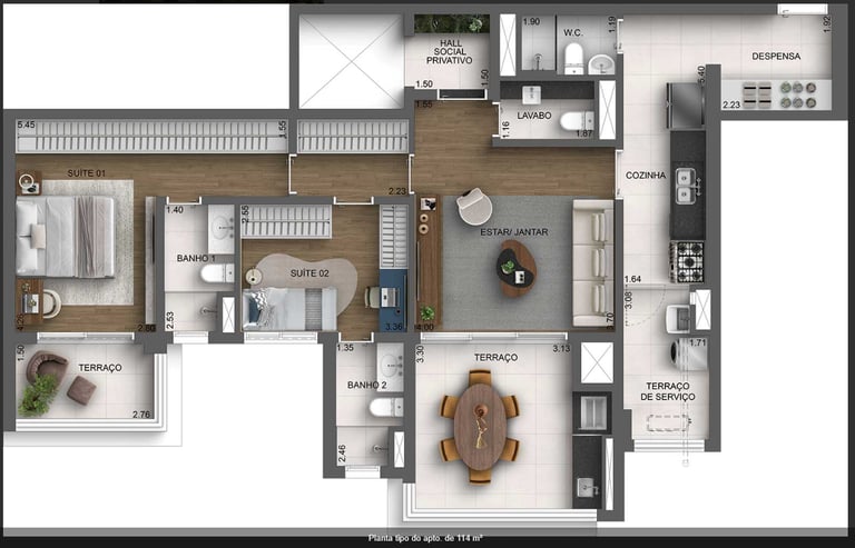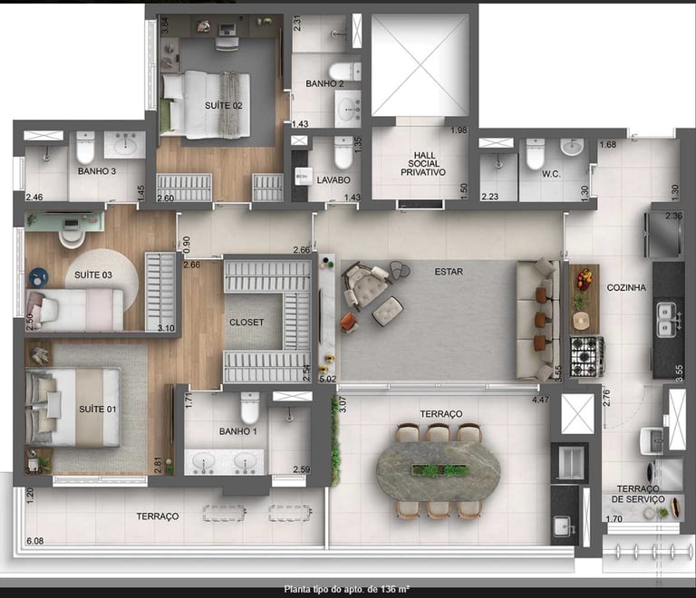2 e 3 suítes