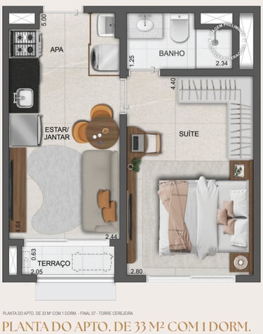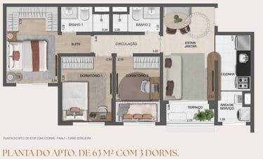 3 Dormitórios - 64,00 m² - 1 vaga (249 unidades)