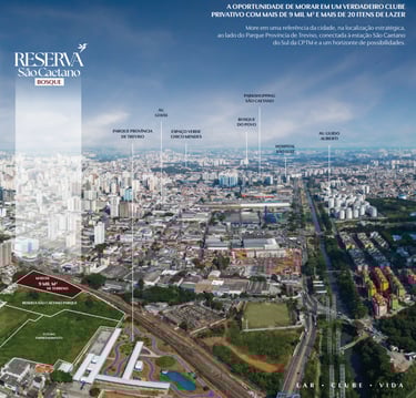 O bairro planejado Reserva São Caetano chegou como uma referência para a cidade e um convite para você viver bem. Agora no segundo lançamento, você presencia o encontro da arquitetura, do lazer e da mobilidade, a 500 m da estação São Caetano do Sul.