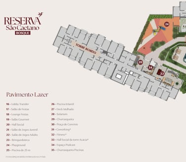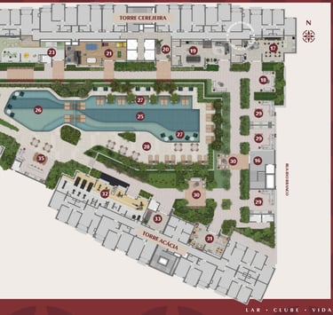 Nº de Unidades por Andar: 2 torres (Acácia e Bordo) - 10/andar por torre 1 torre (Cerejeira) - 16/andar por torre