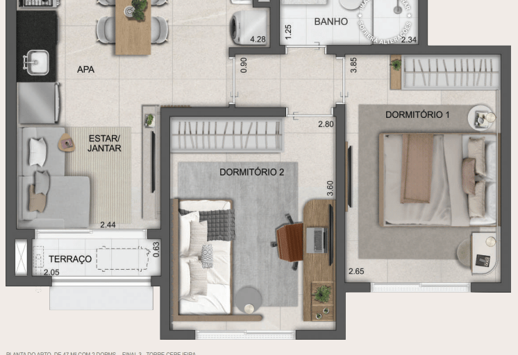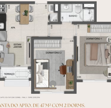 2 Dormitórios - 47,13 m² - 1 vaga (249 unidades)