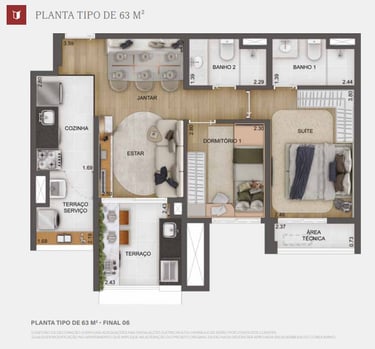 2 dorms. – 63 m²