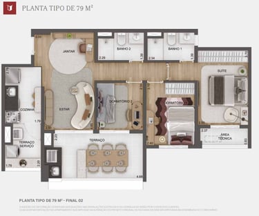 3 dorms. – 78 e 79 m²