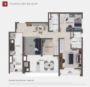 (1 suíte) - 1 vaga (56 unids.)